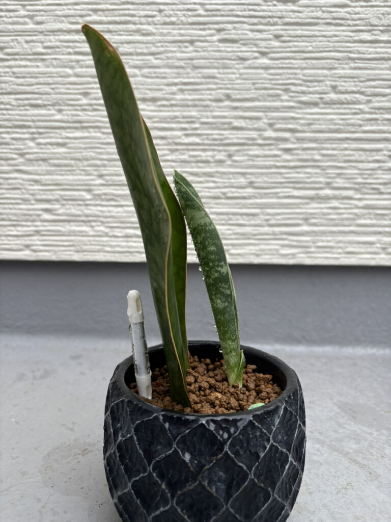 この葉の巨大化は、春から秋にかけての適切な日光浴と、生育期の定期的な水やりが功を奏した結果だと考えられます。サンスベリアの育て方として、日照不足になると葉が徒長(細長く伸びること)してマッソニアーナの魅力が半減してしまうため、十分な明るさは非常に重要だと意識して育てました。